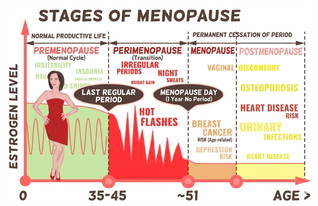 The transition often starts in the early to mid-forties, during perimenopause, when estrogen and progesterone levels fluctuate unpredictably. These fluctuations—not just low hormone levels—are responsible for many early symptoms.